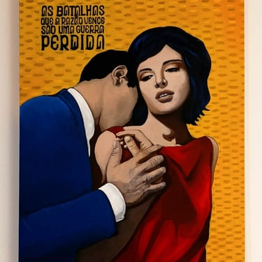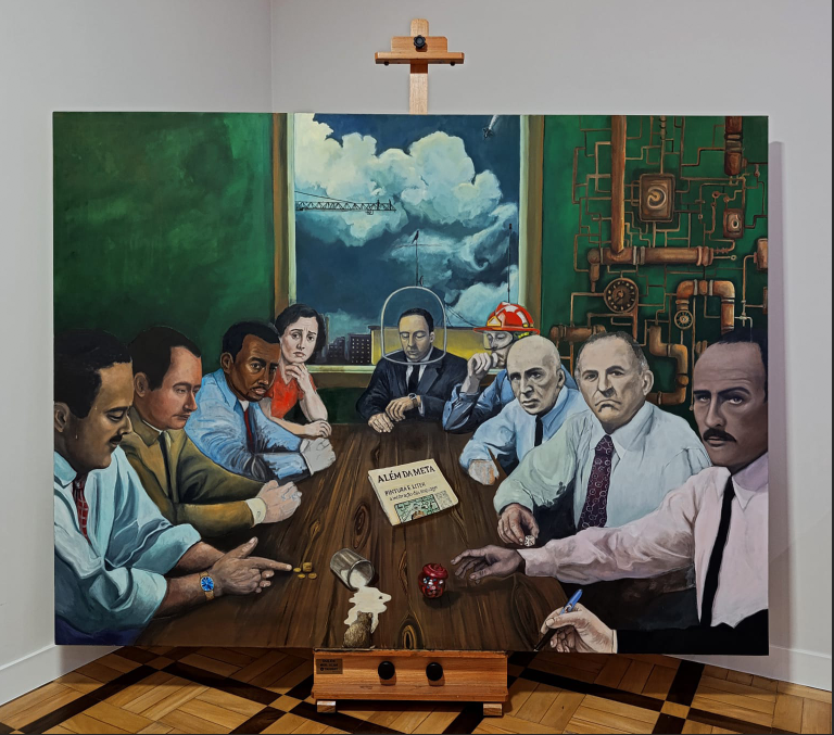 Nesse jogo de repetições, emerge uma pergunta: o que realmente está em disputa quando duas palavras assumem o lugar de horizonte político? Talvez a obra indique que o conflito anunciado não coincide com o eixo que de fato organiza nossa vida coletiva. Há outra força em ação, mais paciente, mais eficaz, e é ela que o quadro convida a perceber.