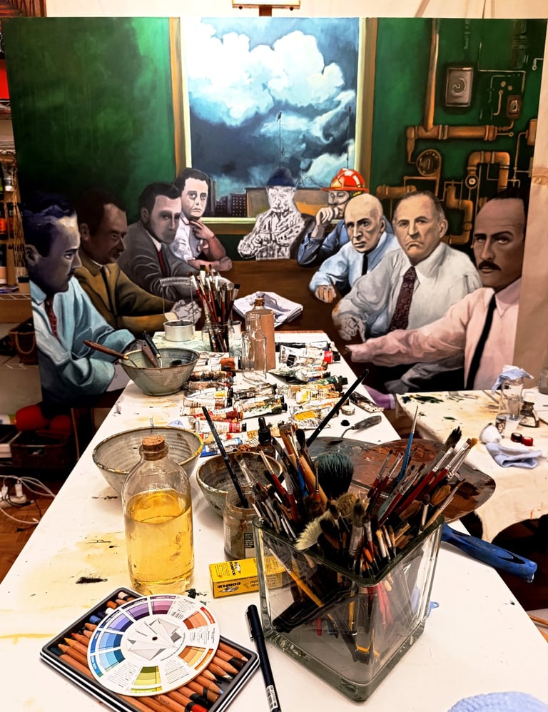 O diálogo com Os Operários, de Tarsila, surge pela geometria da repetição. Onde havia rostos e singularidade, aqui há recipientes idênticos, preparados para receber e esvaziar. A produção fabril cede espaço à circulação de comportamento. A escolha, reduzida ao gesto mínimo e repetido, espelha o modelo que fragmenta a experiência e converte pensamento em resposta instantânea.