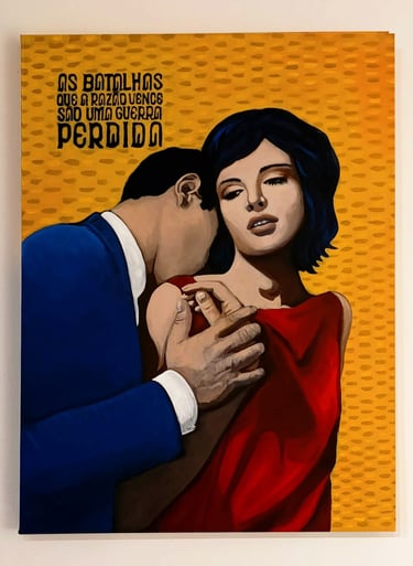 Em História Errada, esse desencontro entre racionalidade e impulso não é tratado como falha, mas como condição humana. As pinturas da série expandem essa percepção: condensam atmosferas do conto, não suas cenas, e tornam visível a tensão entre o que se quer compreender e o que escapa. A narrativa literária abre a fissura; a pintura a aprofunda. Entre ambas, surge a constatação silenciosa de que compreender — ou narrar — nunca é total: é sempre um gesto parcial, provisório, atravessado por intuições que acertam, erram e, sobretudo, nos colocam em movimento.